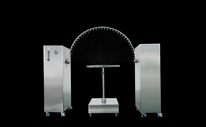 擺桿式淋雨試驗設備由擺管支架、擺管傳動、工作旋轉臺、電氣控制四部分組成,其中支架、回轉臺防護罩、儲水箱、試驗水加壓回流裝置、控制臺采用SUS304不銹鋼發紋板制作。